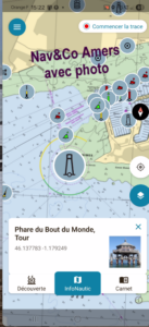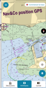 Le GPS fonctionne par défaut et permet de bien se situer sur les cartes du SHOM . L’inscription dans le site permet de garder la trace des trajets.